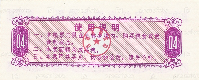 Китайский продовольственный рисовый купон 1975 года, оборотная сторона