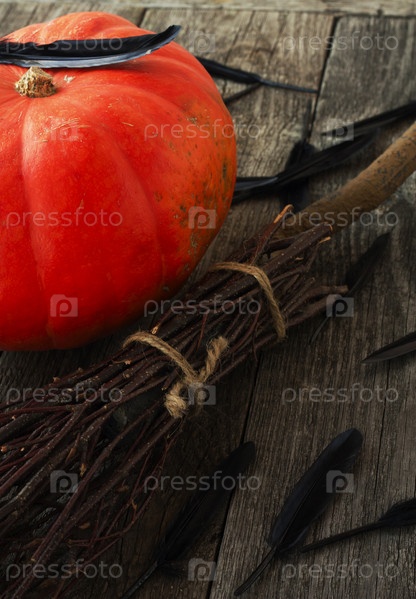 Тыква и веник для Хэллоуина