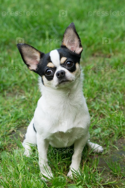 Чихуахуа сидит на траве