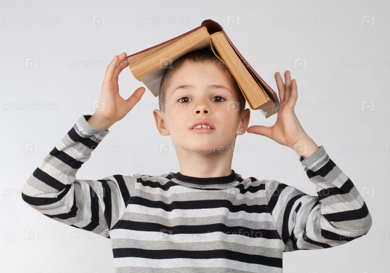 Мальчик с книгой на голове