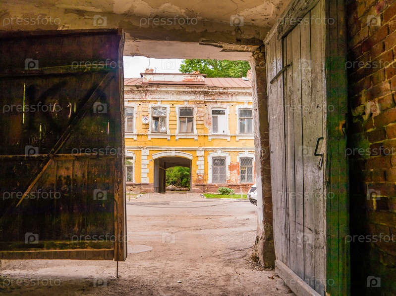 Вид на старый купеческий дом из арки соседнего дома. Улица Челюскинцев в Саратове