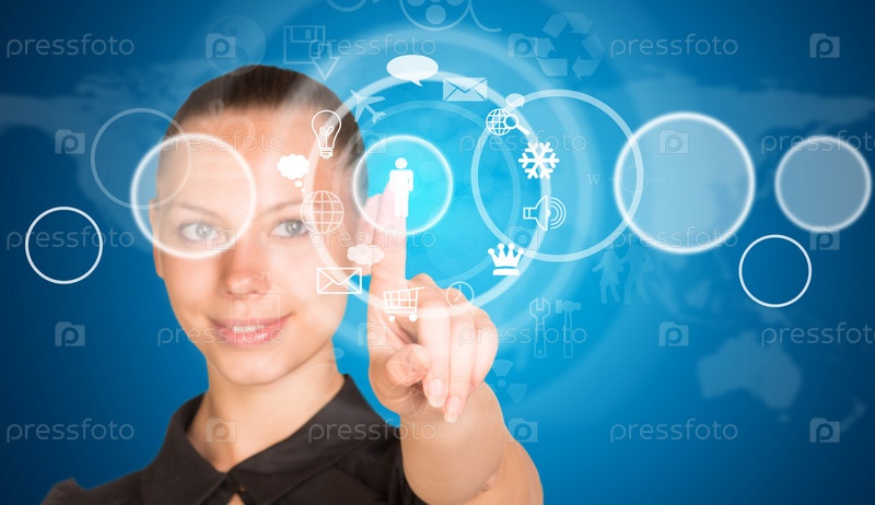 Бизнес-леди нажимает кнопку на сети контактов