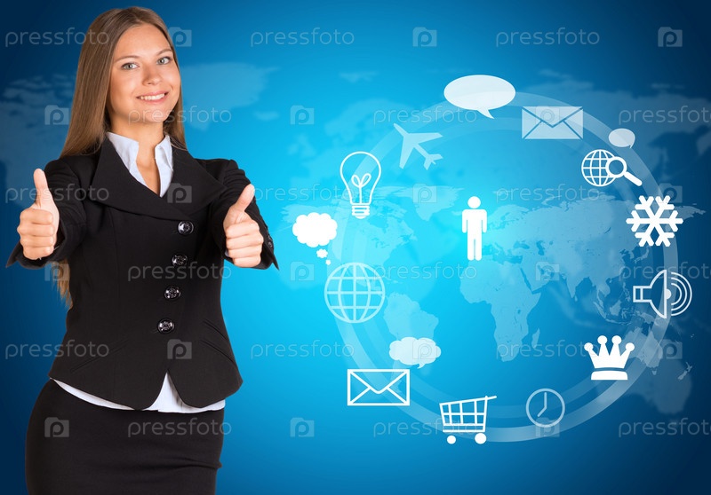 Красивая деловая женщина держит вверх большие пальцы