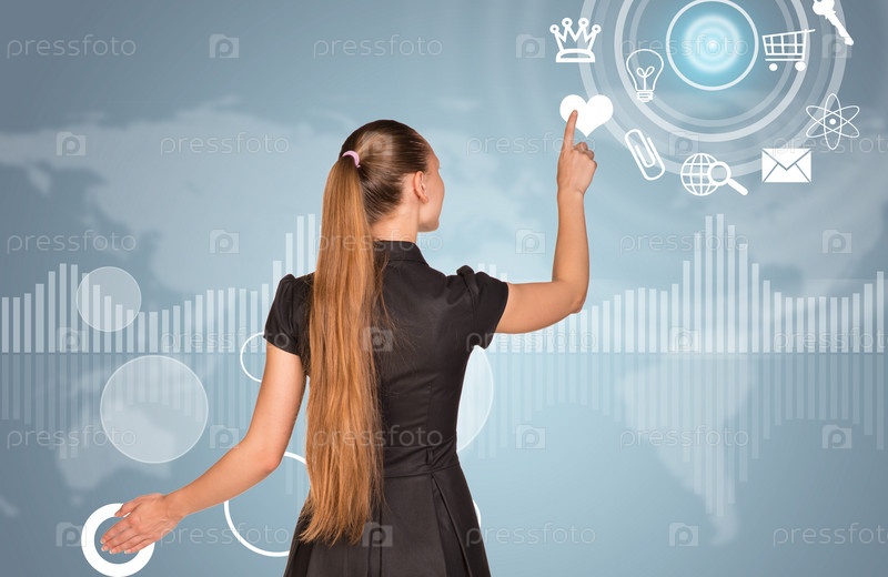 Бизнес-леди нажимает виртуальную кнопку