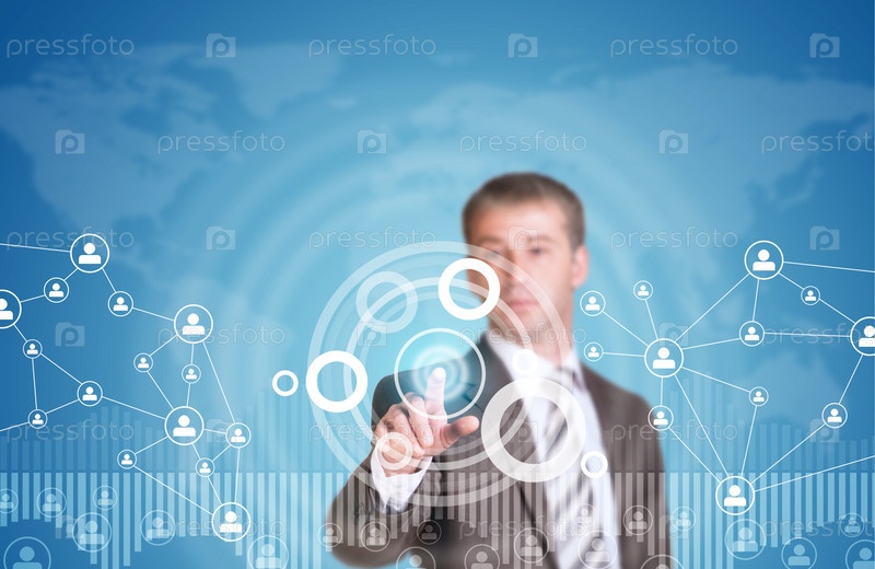 Бизнесмен нажимает виртуальну кнопку