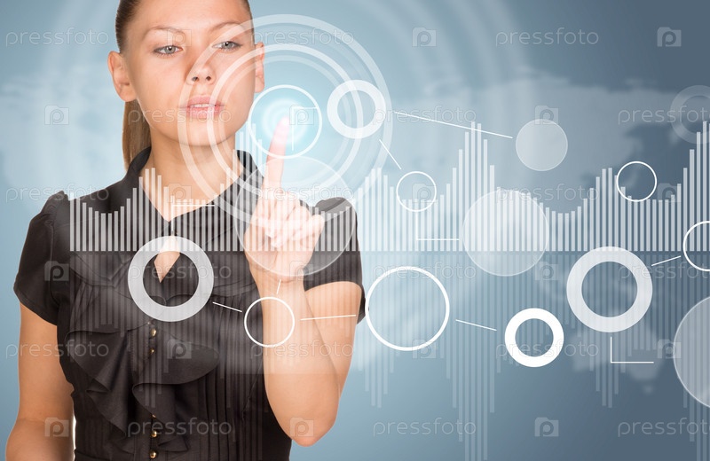 Деловая женщина нажимает виртуальную кнопку