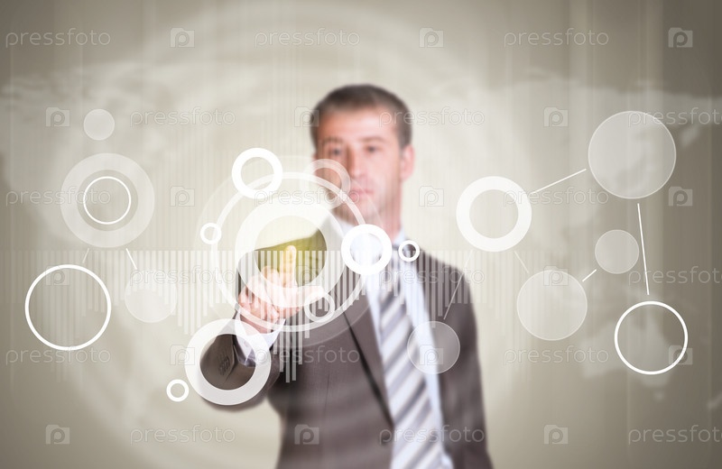 Бизнесмен нажимает виртуальную кнопку