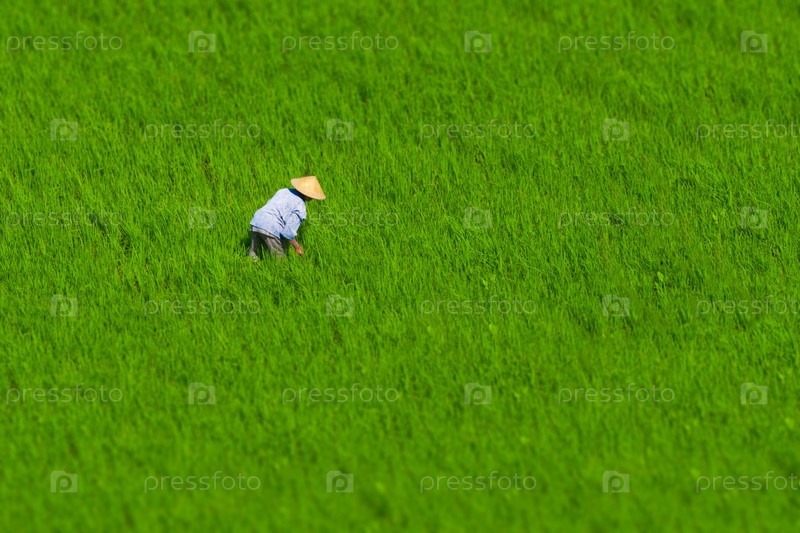Индонезийский фермер работает на рисовом поле