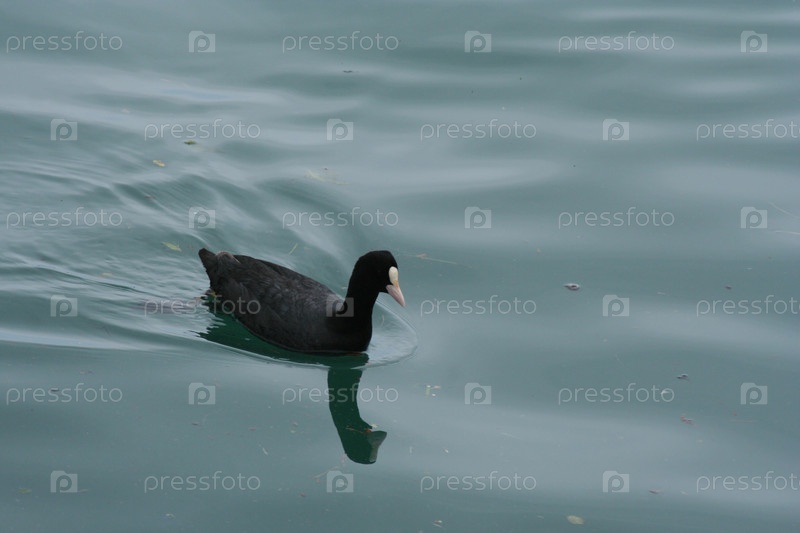 Черная утка на озере