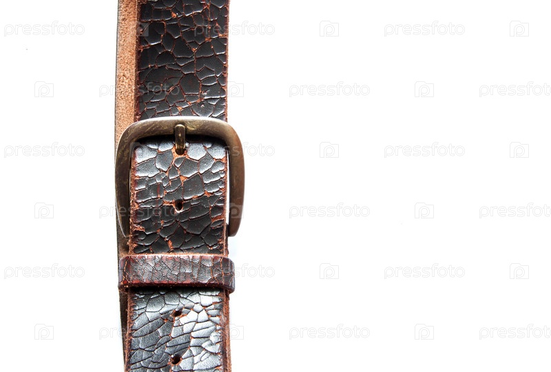 Старый кожаный пояс на белом фоне