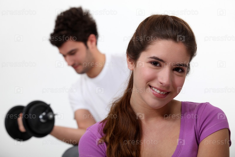 Пара занимается спортом
