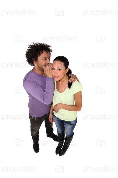 Мужчина что-то шепчет женщине на ухо