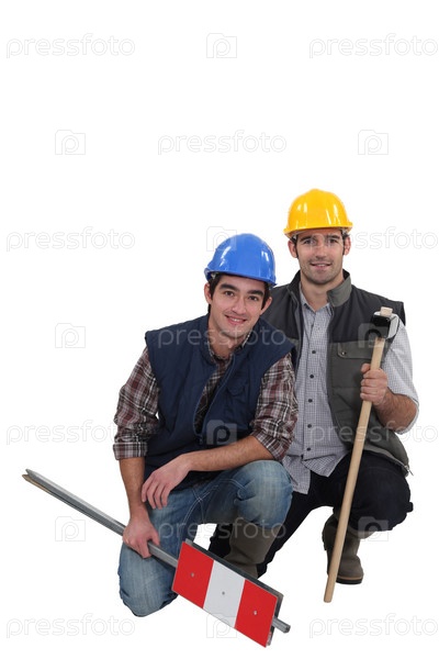 Рабочие на белом фоне