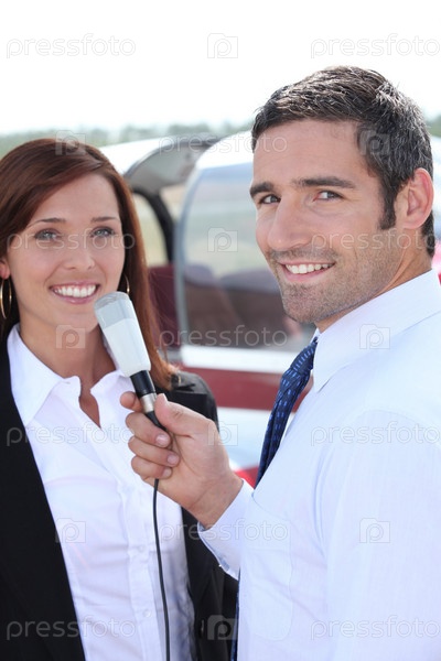 Женщина дает интервью журналисту