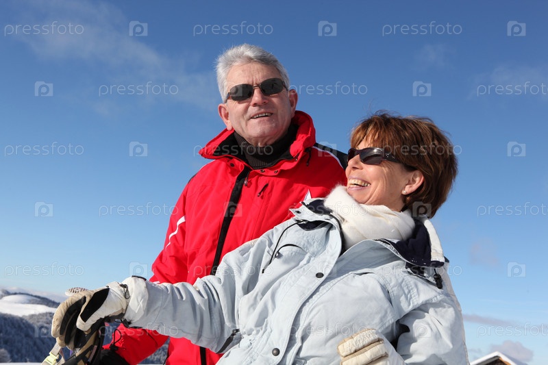 Пары лыжников на горе