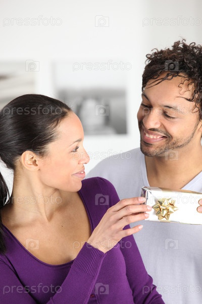 Мужчина дарит подарок своей жене