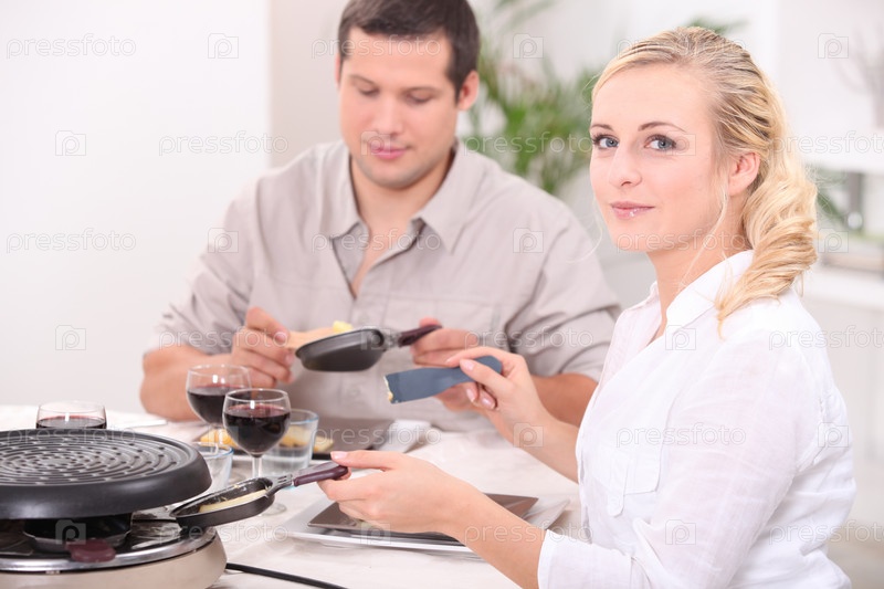 Пара ест раклетт
