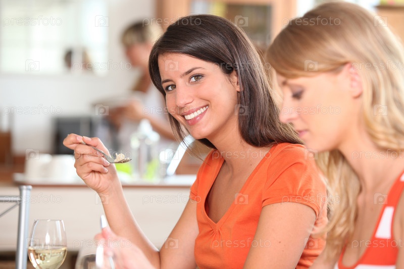 Девушка обедает дома