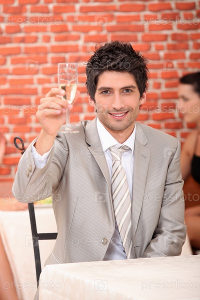 Мужчина поднял бокал шампанского