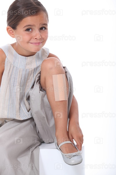 Маленькая девочка с пластырем на ноге
