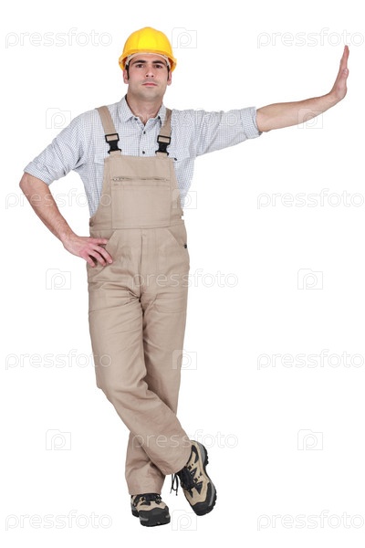 Строитель опирается на воображаемую стену