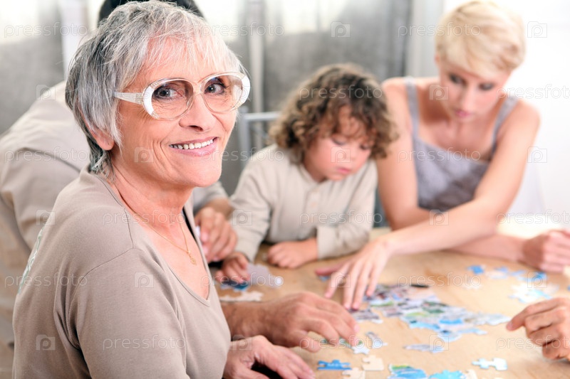 Семья складывает пазл