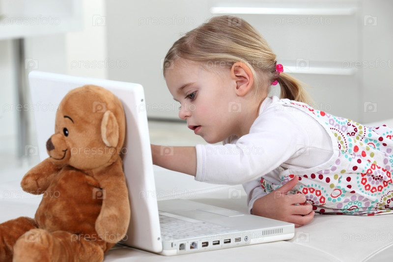 Маленькая девочка с ноутбуком