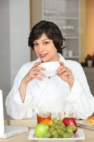 Женщина завтракает
