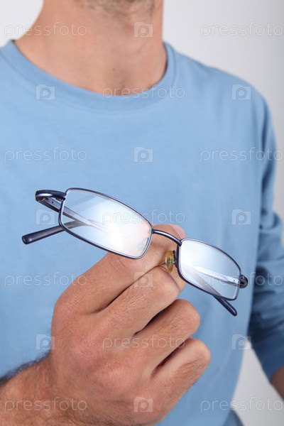 Мужчина держит очки в руках