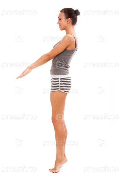 Девушка выполняет упражнение на белом фоне