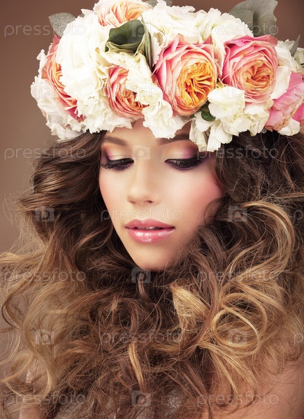 Девушка в венке из разноцветных цветов