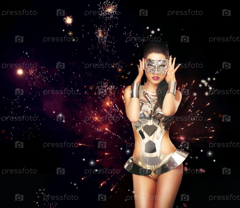 Женщина на фоне фейерверка