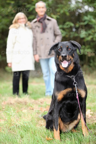Пара на прогулке с собакой
