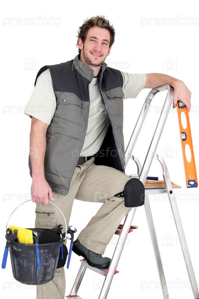Плиточник на лестнице