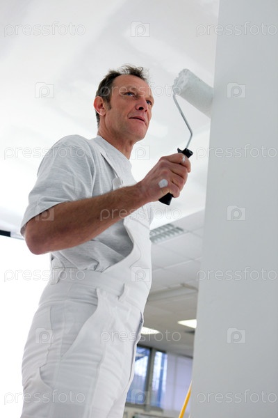 Маляр красит комнату