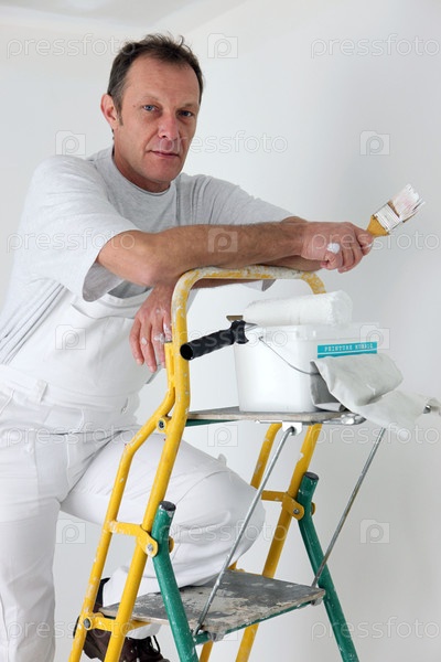 Маляр красит комнату