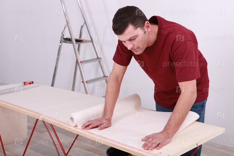 Рабочий клеит обои