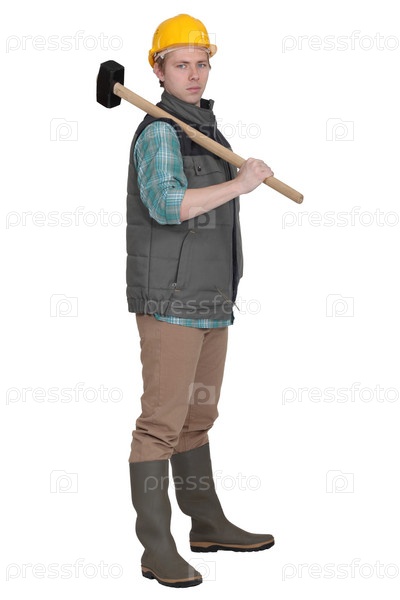 Молодой рабочий с кувалдой
