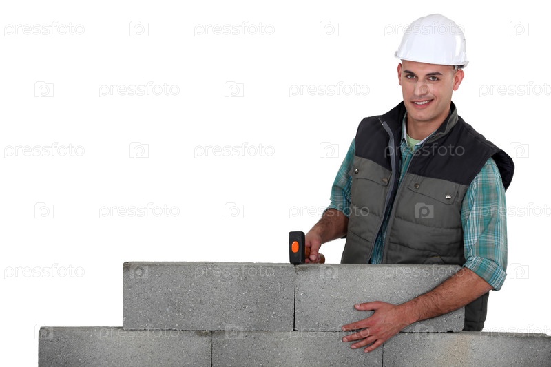 Каменщик рядом со стеной