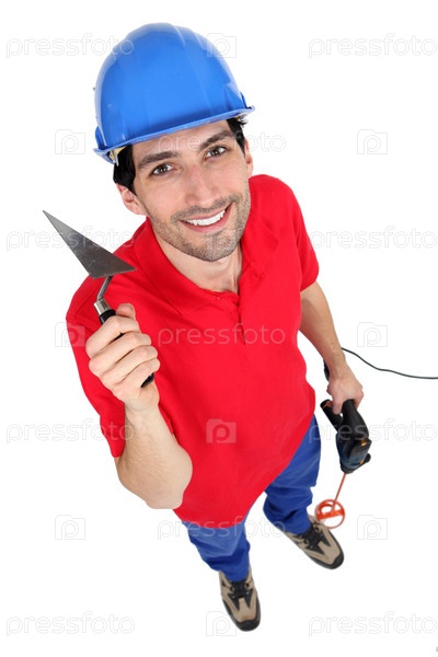 Строитель с инструментами