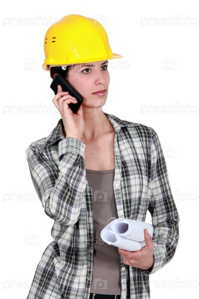 Женщина в каске с чертежами