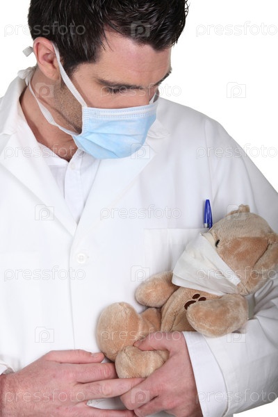 Доктор с больным плюшевым медведем