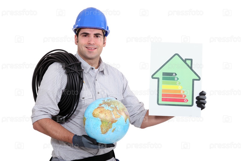 Электрик с символом эффективности энергии