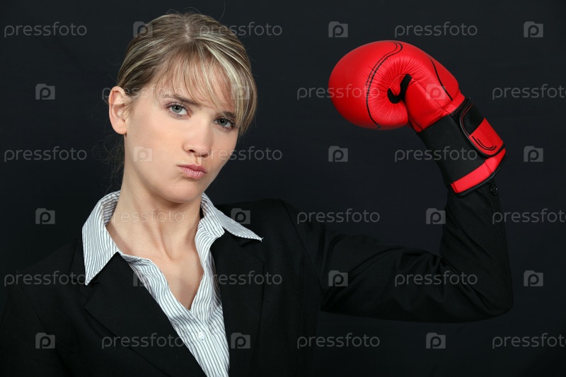Бизнес-леди в боксерских перчатках