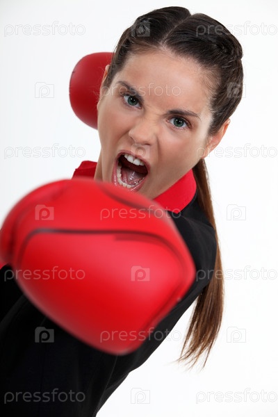Бизнес-леди в боксерских перчатках