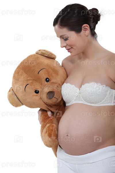 Беременная женщина, держащая плюшевого медведя