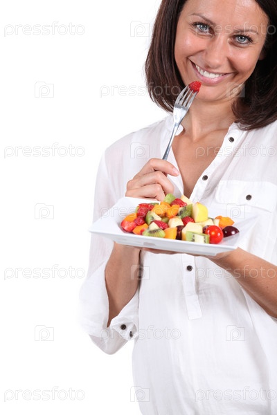 Женщина держит фруктовый салат