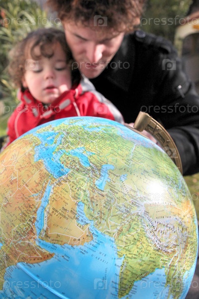 Отец и сын с глобусом