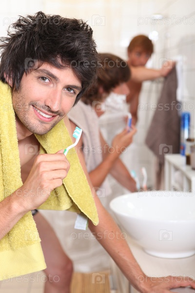 Мужчина чистит зубы