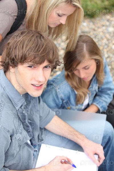 Молодые люди делают домашнее задание